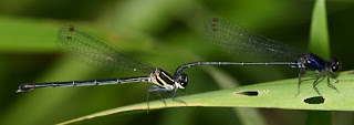 a close up to the head and thorax of female O. atrocyana with the grasp from the male at the neck.